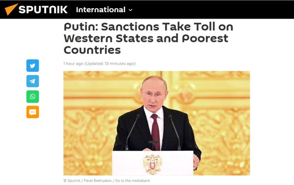 俄卫星社:普京称,制裁对西方国家和最贫穷的国家造成伤害