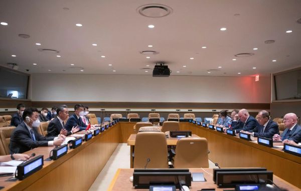 当地时间2022年9月21日,国务委员兼外长王毅在纽约出席联合国大会期间会见俄罗斯外长拉夫罗夫。