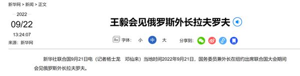 王毅会见俄罗斯外长拉夫罗夫当地时间2022年9月21日,国务委员兼外长王毅在纽约出席联合国大会期间会见俄罗斯外长拉夫罗夫。……