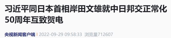 9月29日,国家主席习近平就中日邦交正常化50周年同日本首相岸田文雄互致贺电。