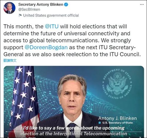 对于此次国际电联秘书长的角逐,美国政府不可谓不重视,美国总统拜登和国务卿布林肯纷纷下场拉票。拜登当地时间9月20日发声明,“强烈支持”博格丹-马丁担任新一任秘书长,并呼吁所有联合国成员国投票给她。