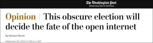 《华盛顿邮报》28日刊登美国中情局前副局长迈克尔·莫雷尔(Michael Morell)的文章,标题写道:“这场鲜为人知的选举将决定开放互联网的命运。”