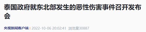 泰国政府就东北部发生的恶性伤害事件召开发布会当地时间10月6日18时,泰国警察总署署长丹荣萨、农磨兰普府府尹及其他相关部门官员就当天发生在该府的恶性伤害事件召开新闻发布会。……