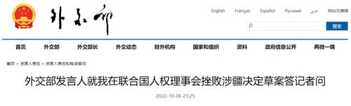 外交部发言人就我在联合国人权理事会挫败涉疆决定草案答记者问