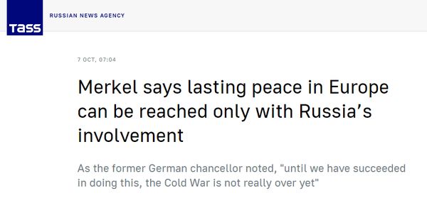 默克尔:只有俄罗斯参与,欧洲的持久和平才能实现综合俄罗斯塔斯社、德国媒体“merkur”等报道,……