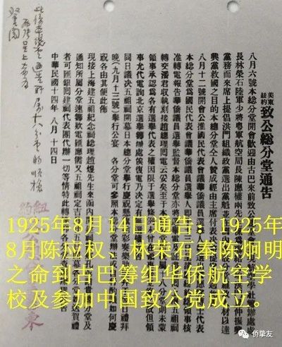 1925年8月,中国致公党筹备委员会总会成立,并就有关建党的事项,发出《通告全体洪门人士书》(共八条略),通告全体洪门人士。1925年9月1日,以旧金山中国致公党总部名义公开发表了“敬告广东父老昆仲书”,号召全粤父老昆仲支持陈炯明的革命举动。1925年9月10日举行代表会议,陈炯明委派陈应权代表参加,会议结束后,即由中国致公党中央总部朱逸庭、陈浩孙、林荣石、朱仲缉等签名给陈炯明、唐继尧两人发出正式推选证书。