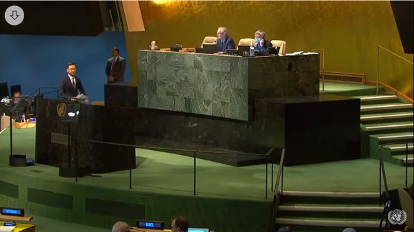 当地时间2022年10月12日,美国纽约,在联合国总部,中国驻联合国大使耿爽在联合国大会紧急会议上发言,讨论俄乌问题。