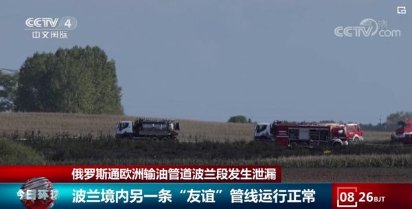 公告称,发生泄漏位置距波兰中部城市普沃茨克大约70公里。无人机拍摄的画面显示,从地下管道流出的黑色油渍蔓延到泄漏地点附近农田,周边可以看到消防车和紧急救援队伍。