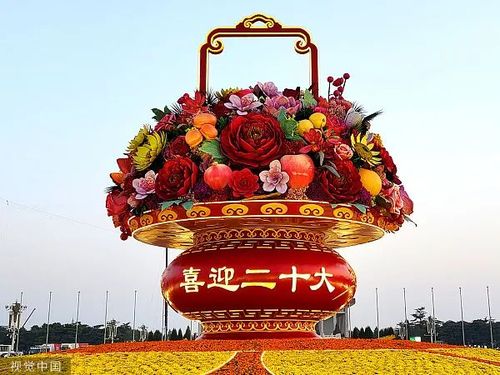 2022年9月25日,北京,天安门广场上的“祝福祖国”国庆花果蓝。
