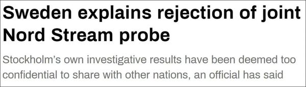 近日,瑞典拒绝了与丹麦和德国成立正式联合调查组来调查“北溪-1”和“北溪-2”管道被炸情况的计划。14日,瑞典表示,该国目前掌握的调查结果内容非常敏感,无法与其他欧盟国家分享。