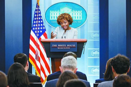 7日,白宫新闻秘书让-皮埃尔在例行记者会上回答提问。图源:外媒