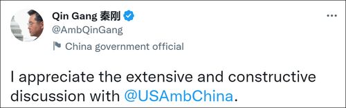 随后,秦刚转发该推文,并@伯恩斯回应道:“我感谢与伯恩斯进行了广泛而有建设性的讨论”。