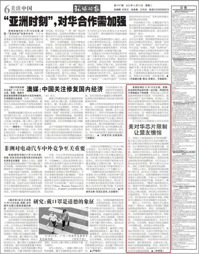 美国彭博社11月13日文章,原题:在迫使世界站到中国一边方面,拜登的芯片限制超过了特朗普