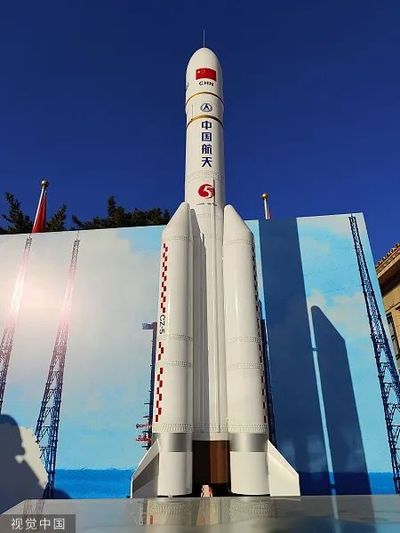 2022年11月5日,北京“奋进新时代主题成就展”,长征五号运载火箭模型。图源:视觉中国