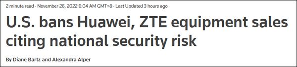 路透社:美国以国家安全风险为由,禁止销售华为中兴设备