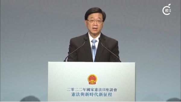 李家超12月4日出席国家宪法日座谈会致辞。图自香港橙新闻