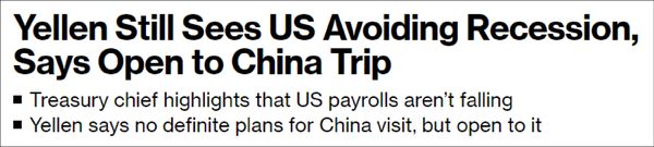 “对于我们是否能避免经济衰退的问题,我相信答案是肯定的。”耶伦向记者表示,美国就业人数迄今未出现下滑,“相信我们在降低通胀方面走在正确的轨道上,经济衰退并不是不可避免的”。