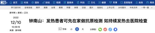 钟南山:发热患者可先在家做抗原检测,如持续发热去医院检查近期,一些城市医院发热门诊患者明显增加。……