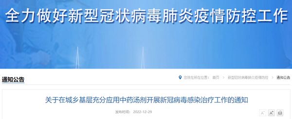 关于在城乡基层充分应用中药汤剂开展新冠病毒感染治疗工作的通知