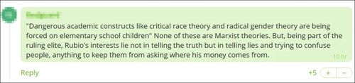 卢比奥认为,美国小学生们正被强加接触“批判性种族理论和激进的性别理论等危险的学术概念”。他还妄称,美国学校是“马克思主义灌输的污水坑”。