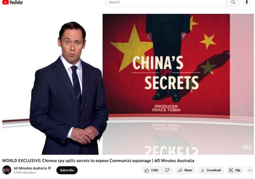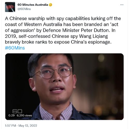 如下图所示,在2022年5月13日,当王立强“间谍案”的公信力早已经破产,连多数澳大利亚媒体都已经不再怎么愿意碰的时候,最初在2019年11月底炒作这个案子的澳大利亚“第九频道”的“60分钟”栏目,仍然在继续鼓吹着王立强的谎言。