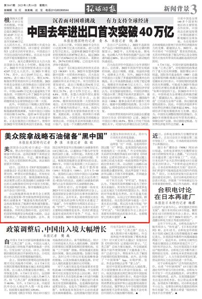 “美国众议院这么做既是胁迫拜登‘打’中国,也是利用中国议题‘打’拜登,是美国国内政治没有底线的又一次表现。”外交学院国际关系研究所教授李海东13日接受《环球时报》记者采访时表示,在中国议题上说事已经成为美国一些政客捞取声望和政治资本的工具。众议院盯上战略石油储备,说明拜登政府对华政策中的方方面面都会遭到审视,因此拜登接下来在涉华议题上不得不异常谨慎,否则就会被政敌“拉到火坑里烤”。
