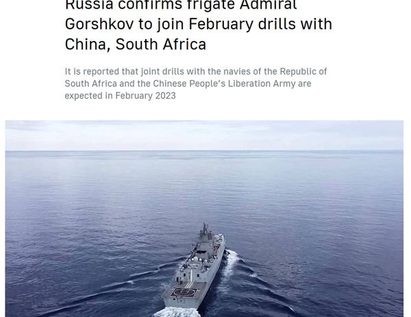 报道称,演习计划于2月初在南非海岸举行。