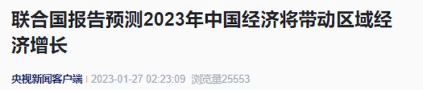 联合国报告预测2023年中国经济将带动区域经济增长联合国25日发布《2023年世界经济形势与展望》报告预测,2023年世界经济增长将从2022年的约3%降至1.9%。……