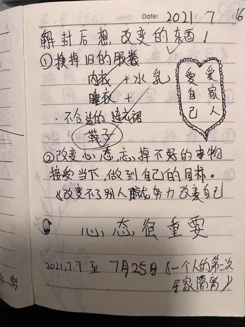 2021年7月,阿芸所在社区又一次被封控,她在日记本写了解封后的计划。