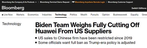 报道称,美国一些官员向拜登政府提出了这一建议,若这项政策获得通过,所有美国供应商向华为供货的许可证申请都将被拒绝。知情人士称,这项政策还处于早期讨论阶段,有可能在5月时获得通过,即美国将华为加入“实体清单”四周年之时。
