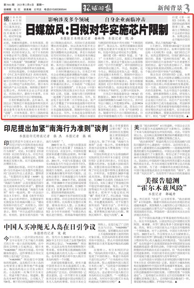 据日本共同社4日报道,日本政府当天已基本决定,为防止尖端芯片技术被转为军用,将对华实施相关出口管制。此前,有媒体报道称,日本和美国、荷兰三国政府已就限制向中国出口先进芯片制造设备达成协议。5日接受《环球时报》采访的专家认为,对于日本的相关举措必须予以警惕,但美国的打压政策势必催生中国进行科研攻关的动力。美国“小院高墙”“脱钩断链”的做法对所涉及的各个国家、全球半导体产业甚至于世界宏观经济都将带来负面影响。