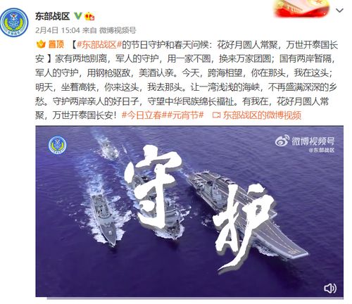 绿媒“三立新闻网”称,解放军东部战区4日在微博发布最新战训MV,主题是《东部战区的节日守护和春天问候》,这支新MV用旁白呈现,刚开始的画面是解放军军人在与孩子视频,告知要出任务。↓