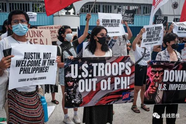 一些菲律宾民众手持标语,要求美军离开菲律宾(图/菲媒)
