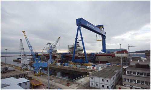 2007年7月,英国国防部正式宣布批准航母建设计划。2008年2月,巴布科克获得价值3500万英镑的船厂改造合同,但是当时英国根本就没有建造大型航母必须用到的巨型龙门吊。