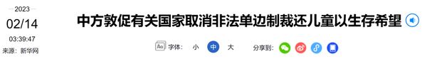 中方敦促有关国家取消非法单边制裁还儿童以生存希望