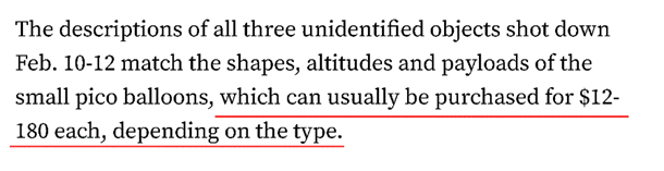 实际上,“航空周刊网”称,美军最近击落的三个飞行物,从其描述的形状、高度和载荷来看,都更符合小型民用气球的特征。
