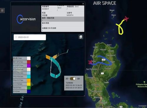 2022年3月31日数据显示,美菲军演期间,美军出动“高空气球”在空中进行侦察 (数据来源:觅熵科技)