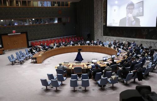 当地时间2023年2月21日,美国纽约,联合国成员国代表在联合国总部就北溪管道爆炸举行联合国安理会会议。图源:视觉中国