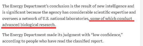 实际上,戈登和《华尔街日报》很可能也意识到了这一荒唐之处,所以为了让美国能源部这么一个负责美国能源问题的政府机关,看起来更像是一个非常懂新冠病毒的病毒学“权威”,他们还有些“做贼心虚”般地强调说美国能源部下属的一些国家级的实验室也是从事先进的生物研究的。