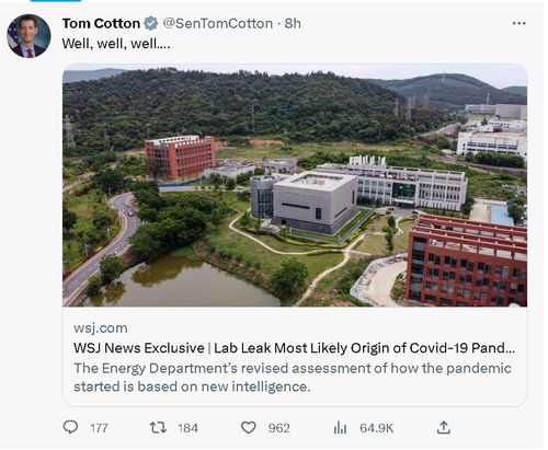 再然后,《华尔街日报》的这篇报道,立刻得到了美国共和党右翼政治势力的疯狂传播。目前,这群曾坚持认为新冠疫情只是“小感冒”,认为新冠疫苗是杀人工具、甚至搞不清楚中国人和越南人的区别的阴谋论者以及他们支持的共和党右翼保守派议员,正纷纷拿着《华尔街日报》的报道,要求美国政府重新调查中国——比如美国共和党反华参议员汤姆·科顿以及美国前国务卿蓬佩奥。