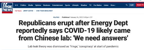 结果,眼瞅着用“间谍气球”黑不动中国,美国的政客和他们在新闻媒体中的帮手,又开始炒作起了一则早已被国际科学界多次驳斥的陈年谣言:新冠病毒是中国武汉病毒所泄漏的。