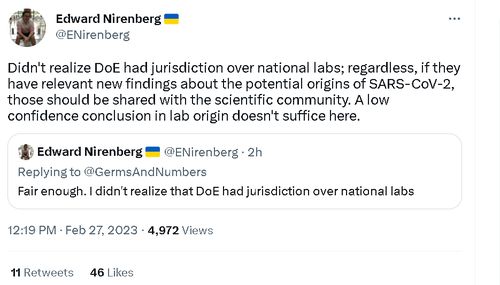 有美国网民亦对美国能源部调查新冠病毒来源这事感到费解,并表示其实验室泄漏的说法只是“低信心度”的话,是不足以证明什么的。