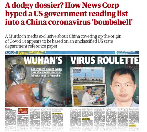 比如2020年4月时,西方反华传媒大亨默多克控制的多家美国、英国和澳大利亚的右翼媒体,就曾炒作说一份来自美国政府内部的“爆炸性”的卷宗显示新冠病毒来自中国武汉病毒所,但实际上那份所谓的卷宗只是一些媒体公开报道的汇编,并没有任何新冠病毒来自武汉病毒所的证据。