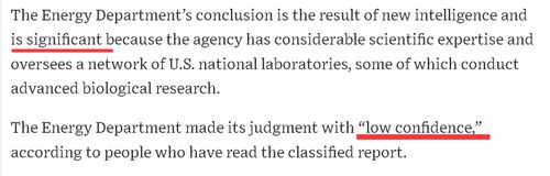 尽管有看过这份“机密”情报报告的人还透露说,美国能源部本身对这个结论也比较没把握,故而对此给了一个“低信心度”的评级,但在戈登和《华尔街日报》的标题党和行文措辞的包装下,这个事就被炒作成了仿佛是一个美国的重大情报发现一般。