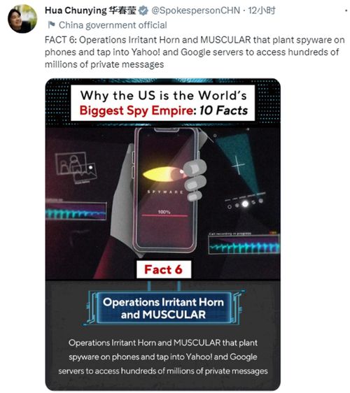 华春莹晒图:“美国是世界最大监控帝国的十大事实”