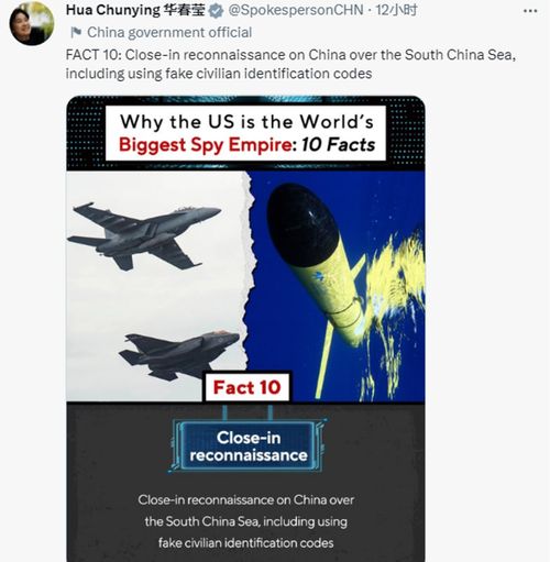 事实 10:抵近观察。美国在南海对中国进行抵近侦察,包括使用假的民航飞机识别码。