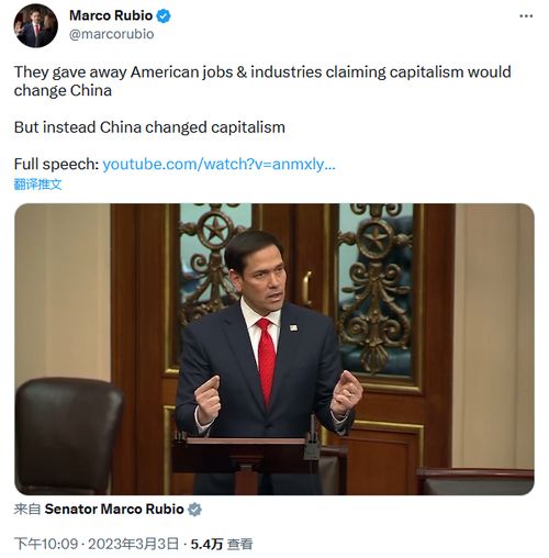 “资本主义没有改变中国,而是中国改变了资本主义。”胡说八道了一通,卢比奥得出这么一个结论。