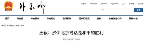 王毅:沙伊北京对话是和平的胜利2023年3月10日,中共中央政治局委员、中央外办主任王毅在主持沙特和伊朗北京对话闭幕式后向记者介绍了此次对话会的重要意义。……