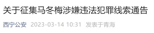 14日,“西宁公安”微信公号发布《关于征集马冬梅涉嫌违法犯罪线索通告》,全文如下: