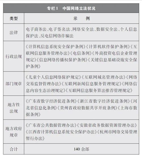中国网络立法随着互联网发展经历了从无到有、从少到多、由点到面、由面到体的发展过程。第一阶段从1994年至1999年,是接入互联网阶段。上网用户和设备数量稳步增加。这一阶段网络立法主要聚焦于网络基础设施安全,即计算机系统安全和联网安全。第二阶段从2000年至2011年,是PC互联网阶段。随着计算机数量逐步增加、上网资费逐步降低,用户上网日益普遍,网络信息服务迅猛发展。这一阶段网络立法转向侧重网络服务管理和内容管理。第三阶段从2012年至今,是移动互联网阶段。这一阶段网络立法逐步趋向全面涵盖网络信息服务、信息化发展、网络安全保护等在内的网络综合治理。在这一进程中,中国制定出台网络领域立法140余部,基本形成了以宪法为根本,以法律、行政法规、部门规章和地方性法规、地方政府规章为依托,以传统立法为基础,以网络内容建设与管理、网络安全和信息化等网络专门立法为主干的网络法律体系,为网络强国建设提供了坚实的制度保障。